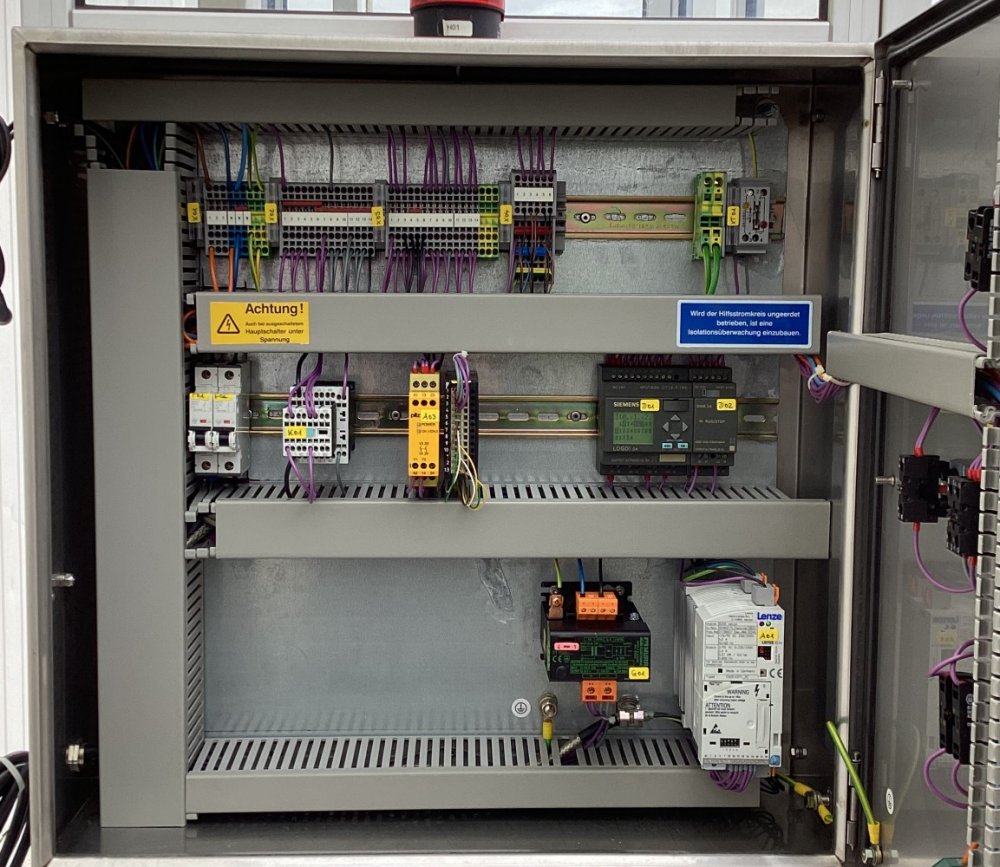 Mit Hilfe eines Füllstandsensors (von Folgemaschinen) werden die Behälter gestartet und die Produktmenge für den Behälter auf eine Auslaufhöhe von ca. 240 cm befördert.