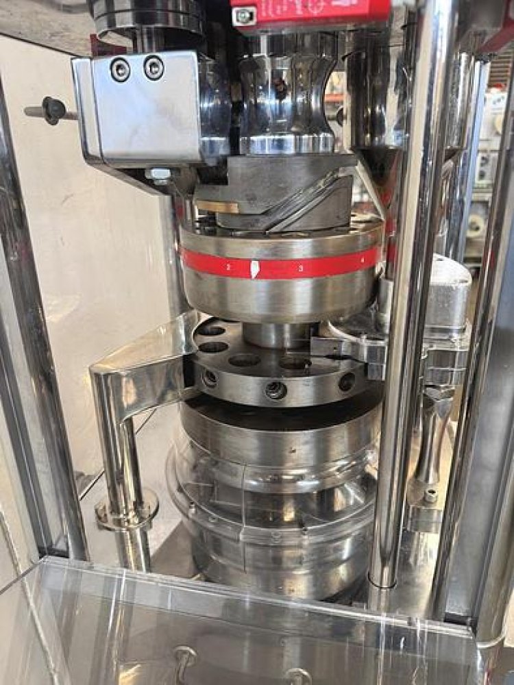 Diese kompakte Tablettenpresse hat eine Leistung von max. 30.000 Tabletten/Std. und ist zur Herstellung von Tabletten mit einem max. Durchmesser von 16 mm ausgelegt.