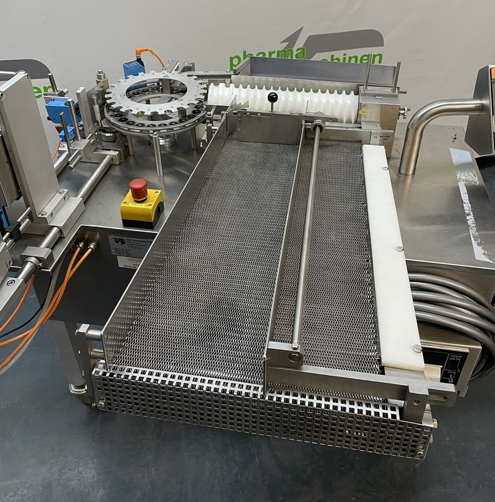 Diese Rundumetikettierung für zylindrischer / runden Objekte hat lt. Hersteller eine Leistung von ca. 6.000 Objekte / Stunde und arbeitet von links nach rechts.