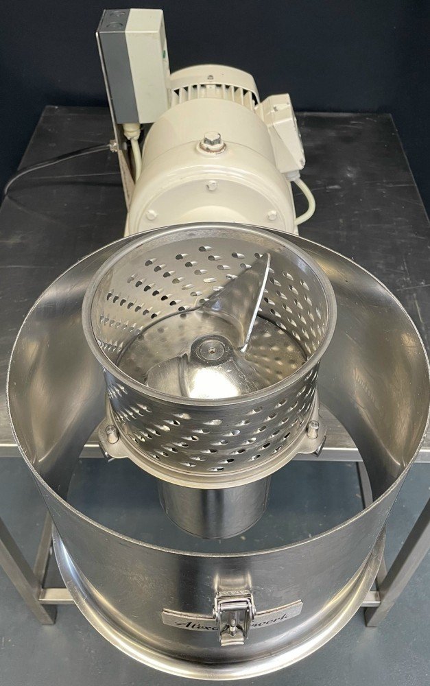 Zum Lieferumfang gehören 4 Reibeinsätze. Das Gerät wird von einem 1,1 kW Elektromotor angetrieben.
