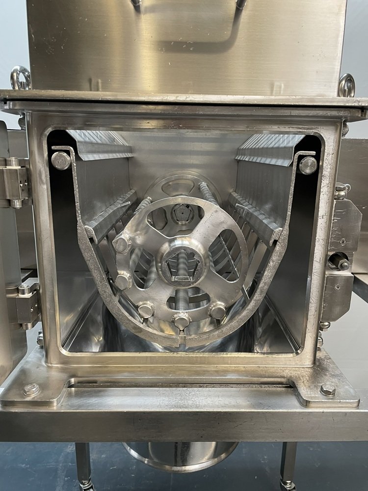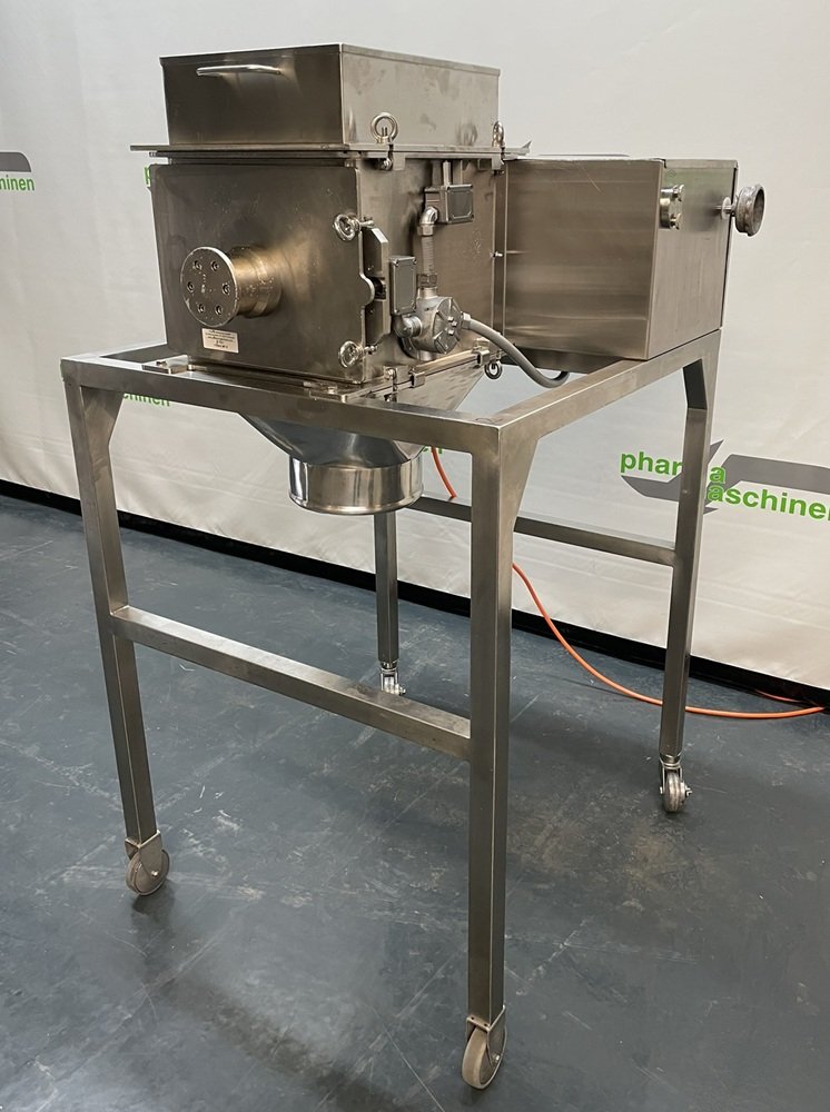 Dieser Granulierer mit einstellbarer Sieb-/Stützwannen-Vorrichtung (dadurch keinen übermäßigen Sieb- und Rotorabrieb) kann universell zum Trockengranulieren, Sieben, Brechen, Feuchtgranulieren etc. eingesetzt werden mit einer Leistung von 2.000 kg / Stunde je nach Produkt-Beschaffenheit.