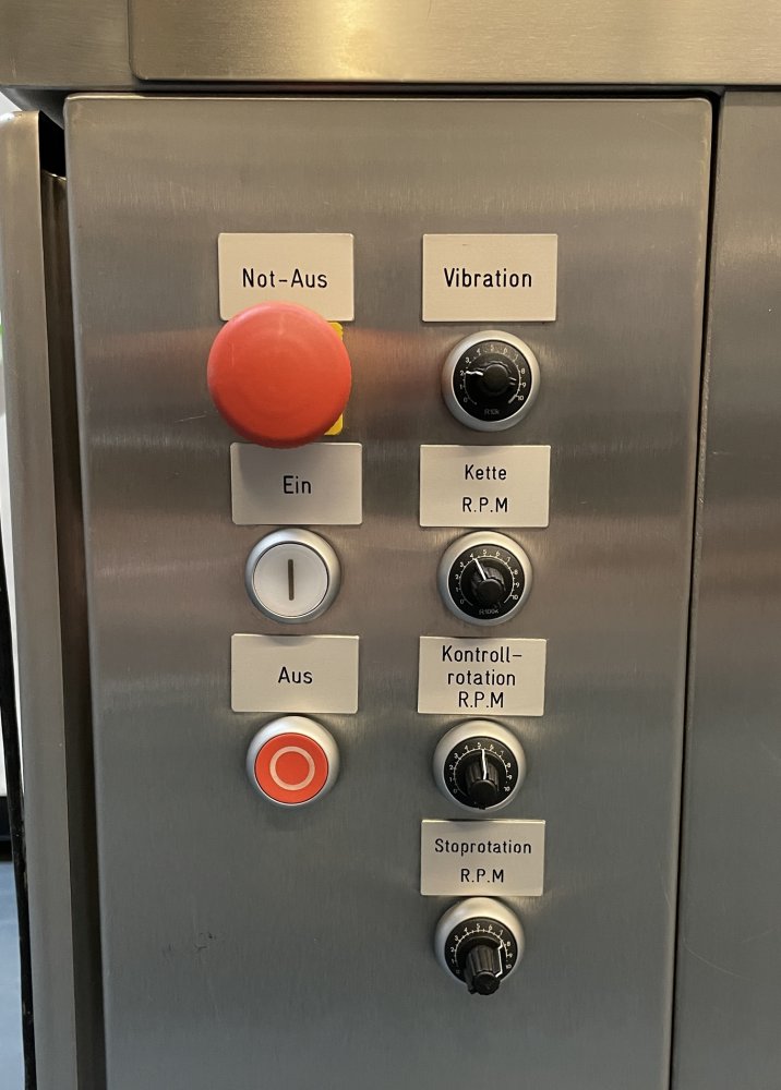 Diese fahrbare Maschine hat eine variable Durchsatzmenge von ca. 60.000 Stück/Std. - je nach Geschicklichkeit der Bedienperson und Beschaffenheit des Verlesegutes.