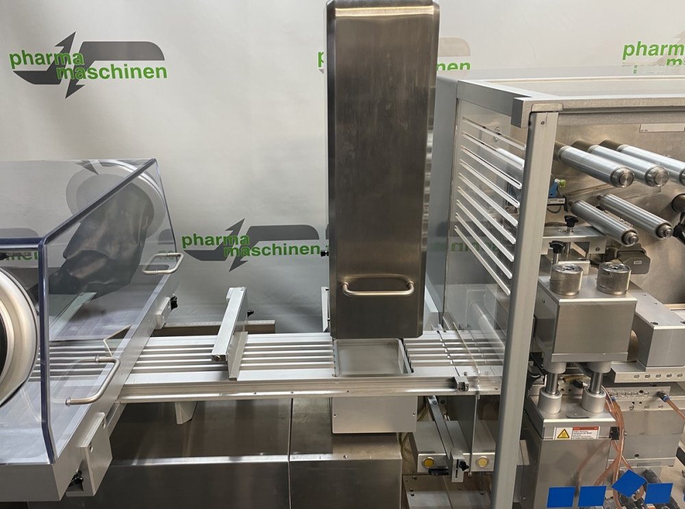 This is a modern compact Blisterpacker constructed to GMP Standards. The machine is of intermittent motion and has a maximum capacity of 70 cycles and 250 blisters per minute. This Blisterpacker can process PVC/Alu or Alu/Alu Blisters.