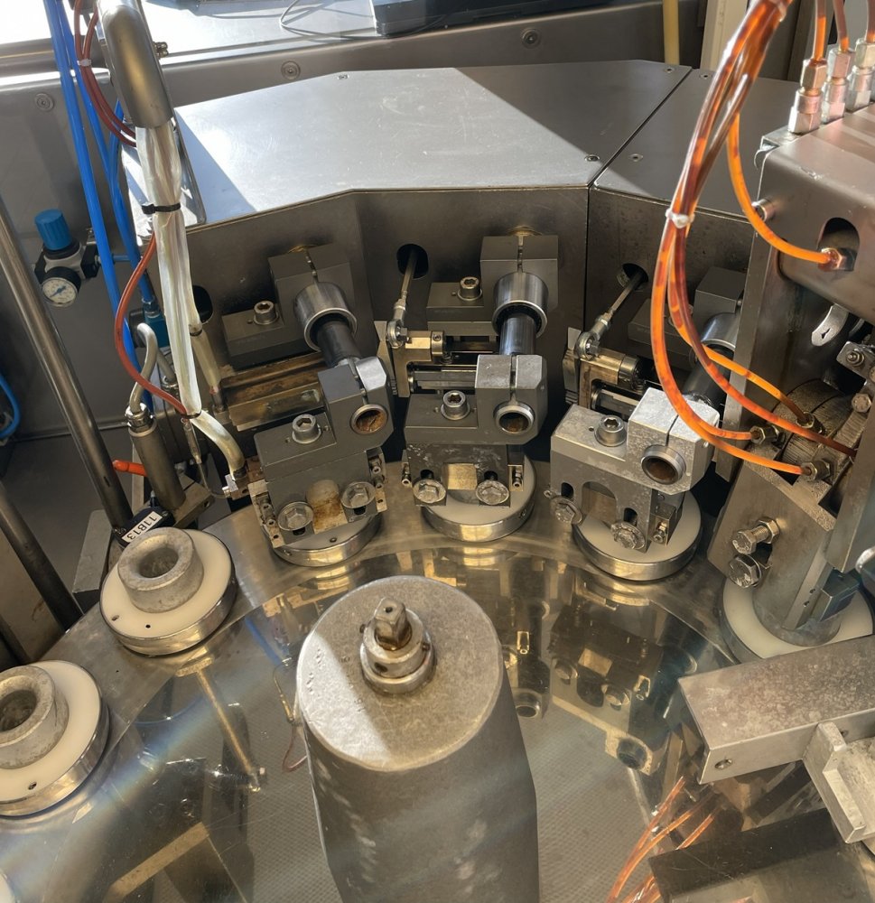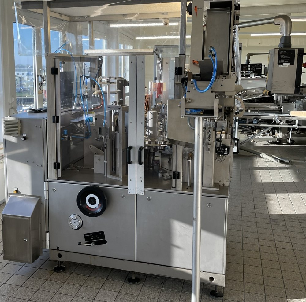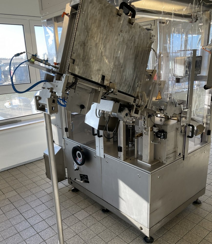 Cette machine a une cadence maximale de 120 objets/min. et est utilisée pour le remplissage et le bouchage de tubes en aluminium. En principe, la machine peut traiter les tubes et volumes suivants, à condition de disposer des pièces de formatage appropriées :