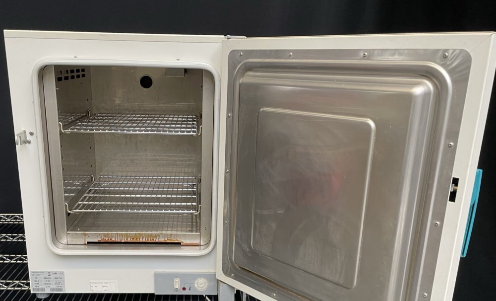 This electrically heated drying oven has internal dimensions of 352 x 424 x 386 mm resulting in a useful capacity of approx. 57 litres. The operating temperature is 250° C.