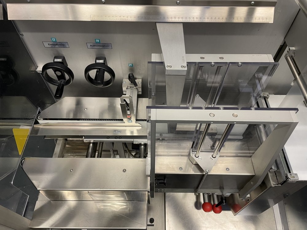 Fully automatic machine for bundling and banding of folding boxes with erecting station and stacking.