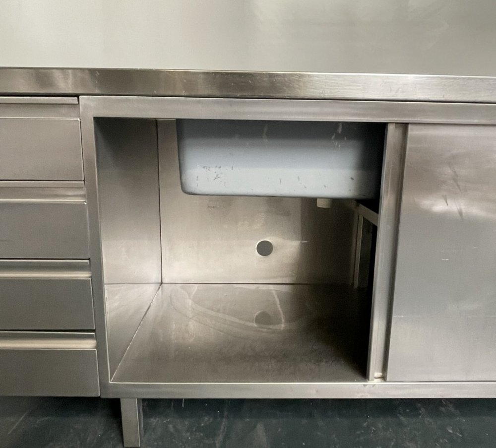 Stainless steel sink with base cabinet