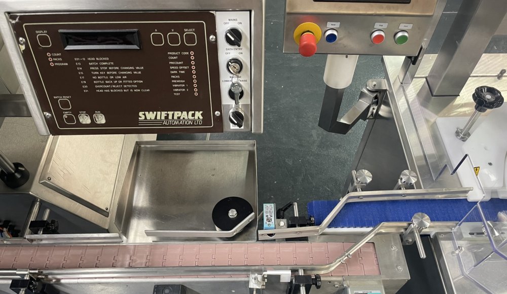 IMA SWIFTPACK Máquina de recuento de pastillas con dispositivo cerrador y etiquetadora como línea