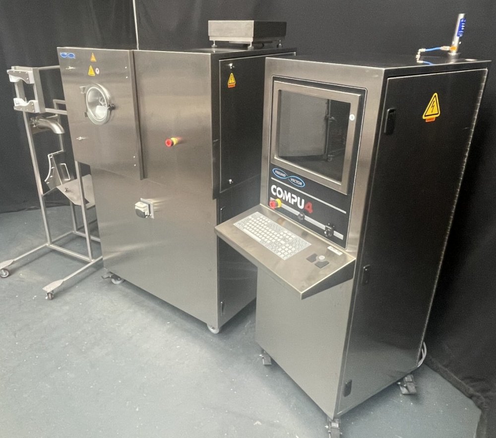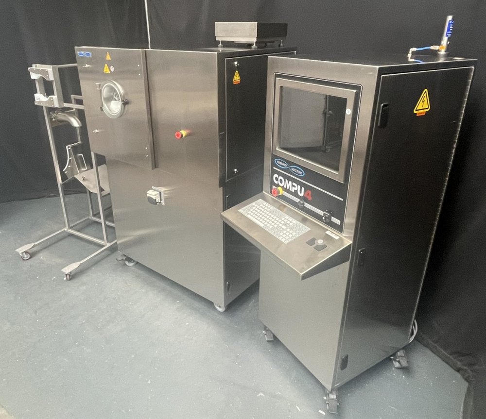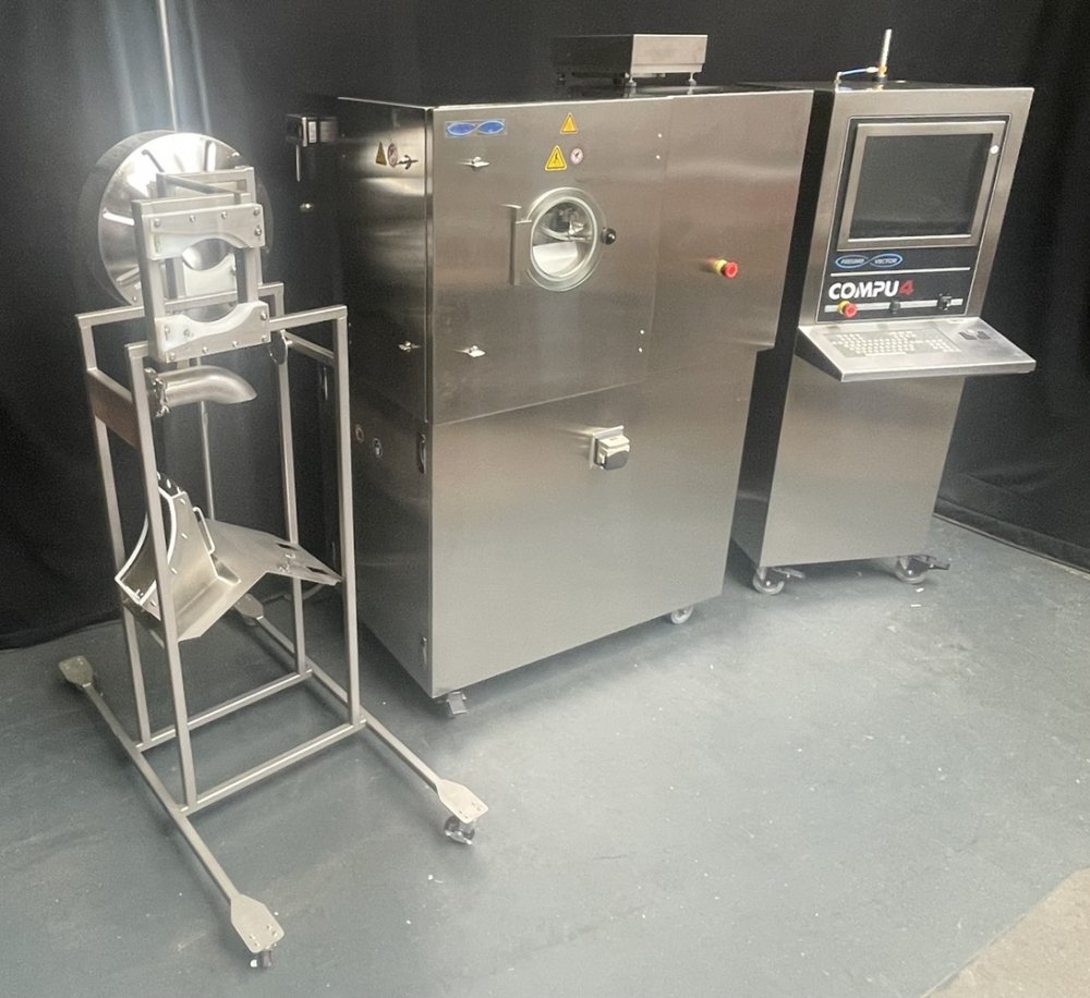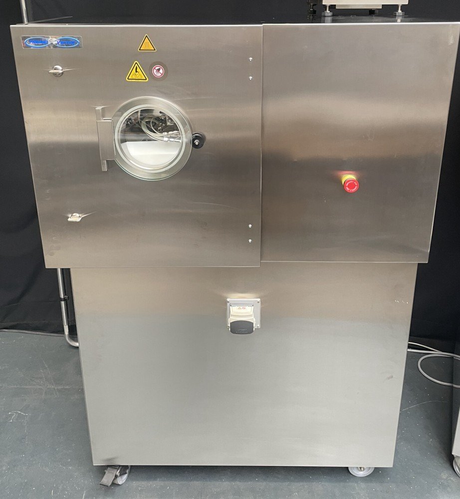 Equipo para hacer pastillas y grageas para laboratorios y lotes pequeños Capacidad máxima 8,0 l Contenido útil (según tambor) Tambor de acero inoxidable: 1,25 - 2,5 l y 4 - 8 l, Ø 330 mm y 450 mm Bomba de manguera Watson Marlow Báscula de control Mettler Manejo mediante controlador COMPU 4 Se requiere suministro de aire comprimido externo