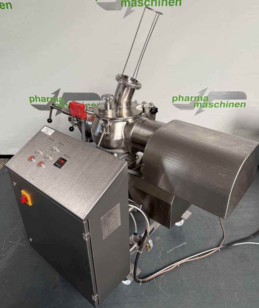 Este dispositivo compacto con ruedas con una capacidad útil de 11,5 l está diseñado para la mezcla intensiva de materiales como polvo o granulado para lotes de centros técnicos o cantidades de producción más pequeñas. Además, se pueden procesar materiales y líquidos de flujo libre. El dispositivo requiere suministro externo de aire comprimido.