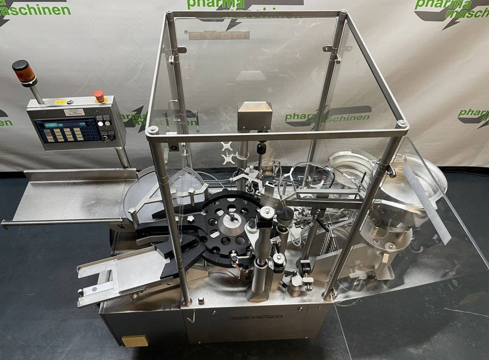 Die Leistung dieser Maschine wird vom Hersteller mit max. 4.200 Objekten / Std. angegeben, abhängig von Produkt und Dosiermenge. Die Maschine ist konzipiert zum Füllen und Verschließen von standfesten Objekten mit nachgeschaltetem Stopfeneinsetzer und Alu-Kappenbördler und kann bei entsprechender Ausstattung folgenden Leistungsbereich abdecken: